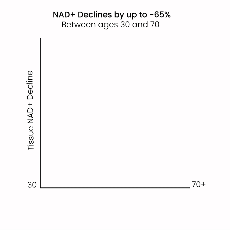 Unfortunately, NAD⁺ naturally declines over time — up to 50% by middle age.